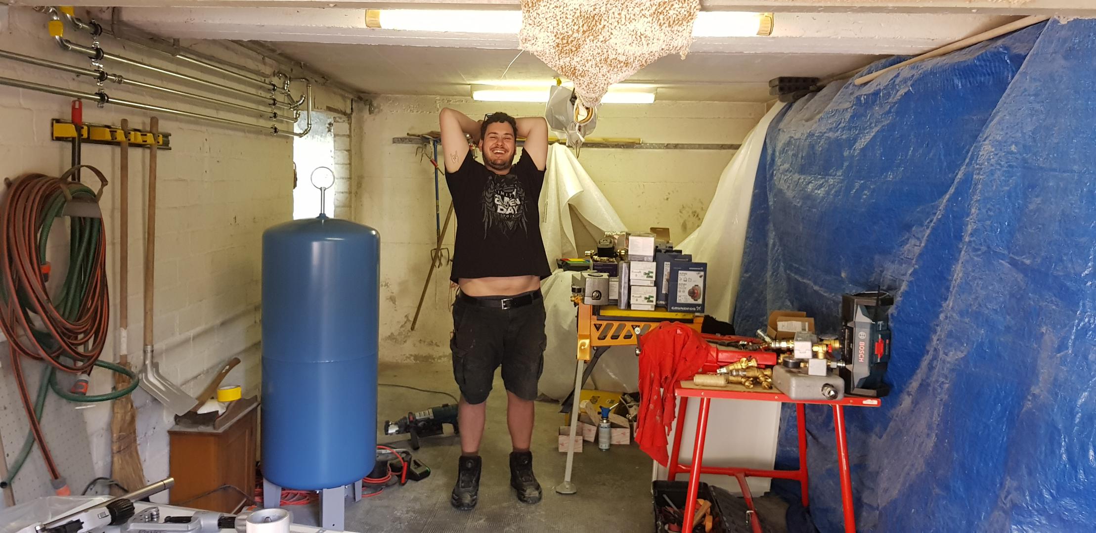 Alter 6000l Öltank raus, 2000l Wassertank + WP + Verrohrung + Elektrotableau rein