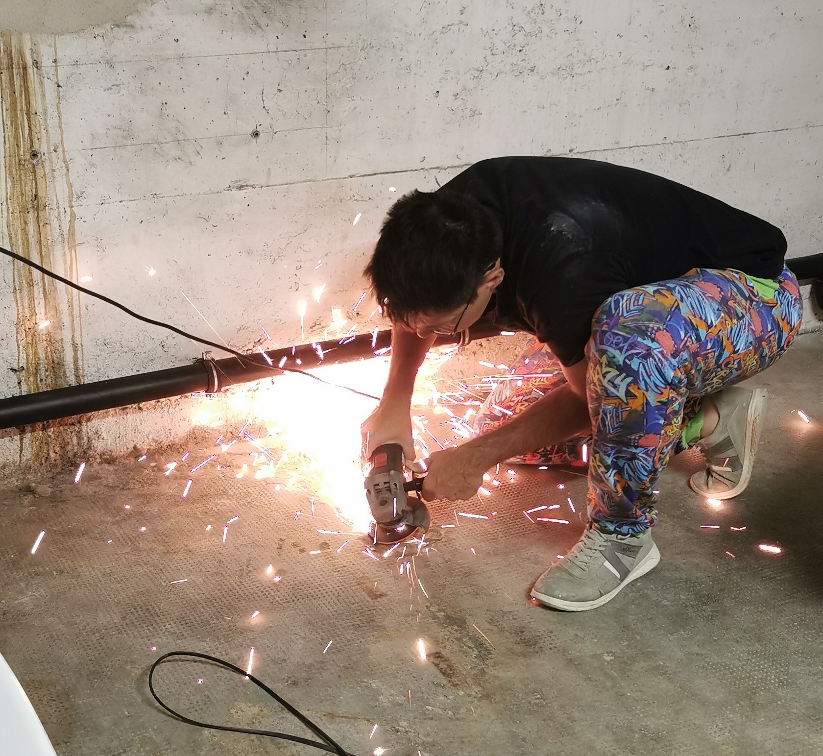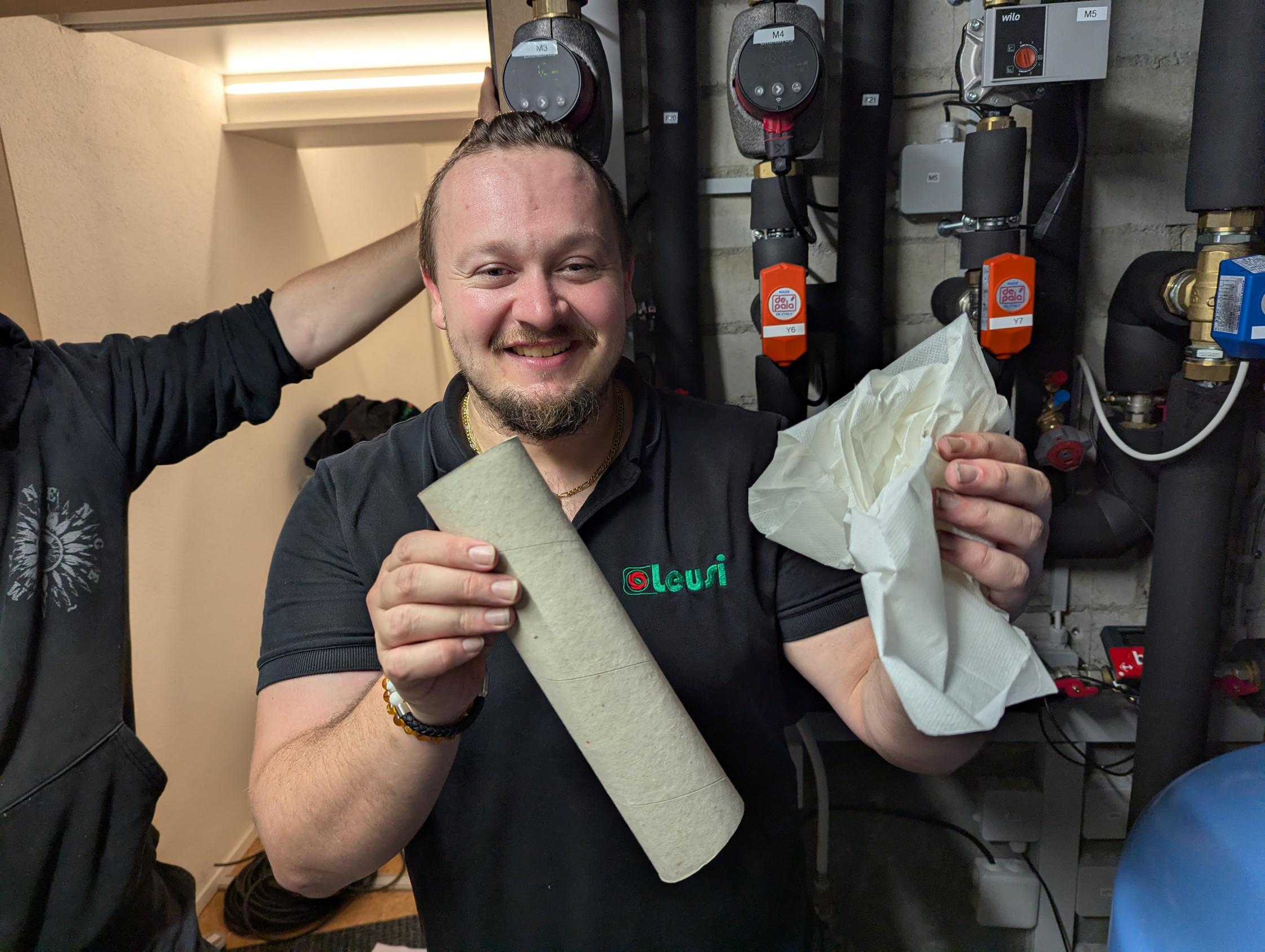 Dank der Unterstützung der ISO2000 durfte ich die einfachen Teile unter kurzer Anleitung selbst machen, während sich die Experten um den komplizierten Heizungsraum kümmerten.
